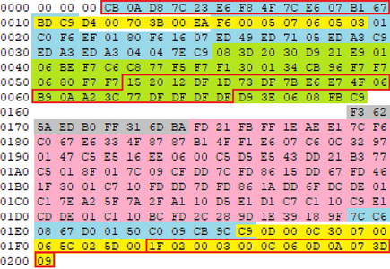 < 1FF,7FE,6FD,6FC,6FB,8FA,7F9,1F8 > 1st sequence at #B9E0